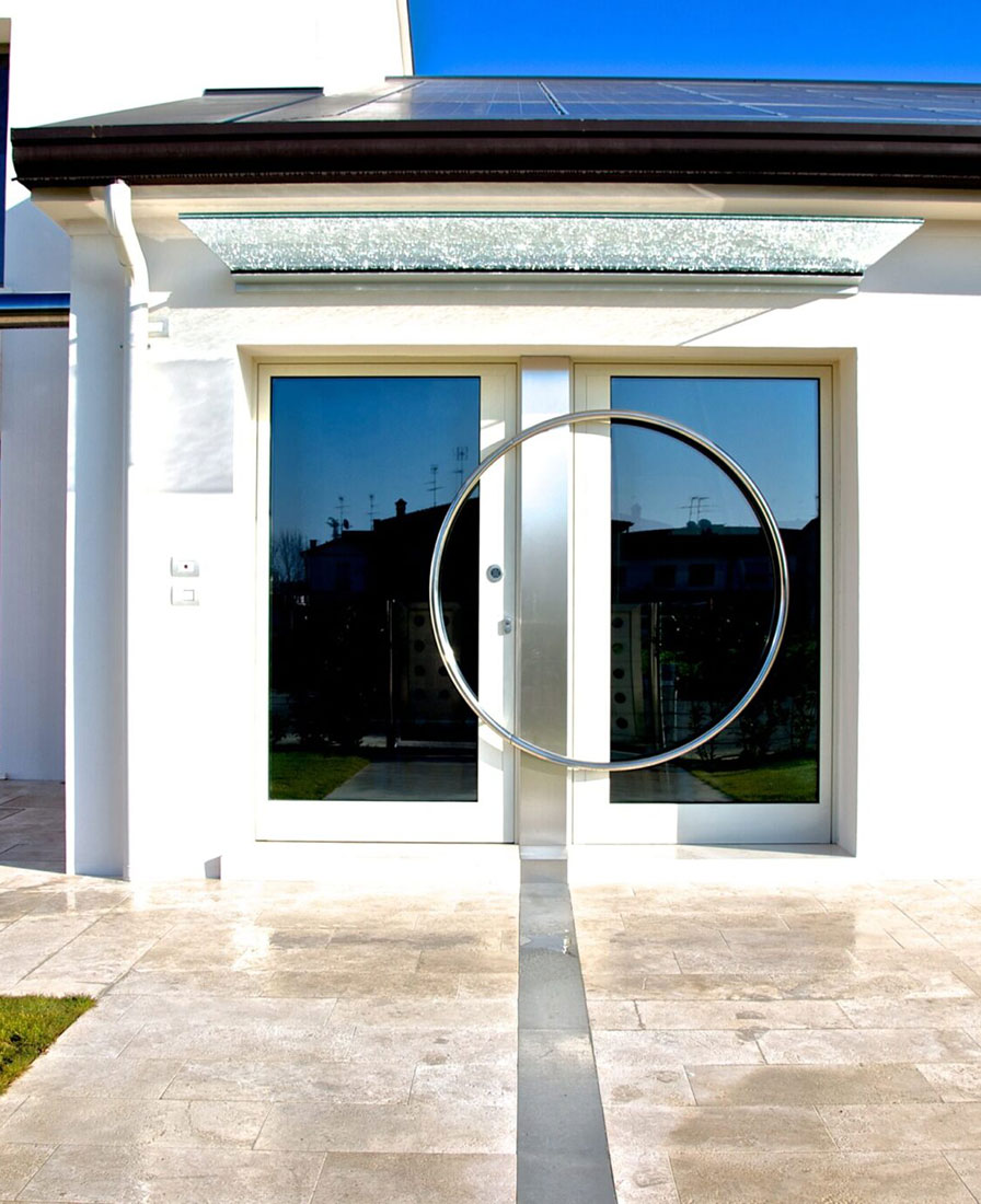 Uno stile moderno ma allo stesso tempo caldo e accogliente, per questa villa privata nel trevigiano. L’edificio è caratterizzato da un imprinting architettonico immediatamente riconoscibile, ben espresso dall’imponente portale d’ingresso con serratura elettronica dotata di tastiera esterna.
