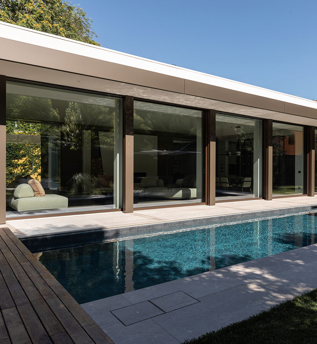 Piena sinergia tra sicurezza antieffrazione e design moderno: è questo l’eccellente risultato ottenuto da GINKO per il progetto di una splendida villa privata a Milano. Le grandi vetrate che comunicano visivamente con il giardino circostante, in cui domina la spettacolare piscina a sfioro, sono certamente uno degli elementi più caratterizzanti di questa elegante residenza in stile contemporaneo.