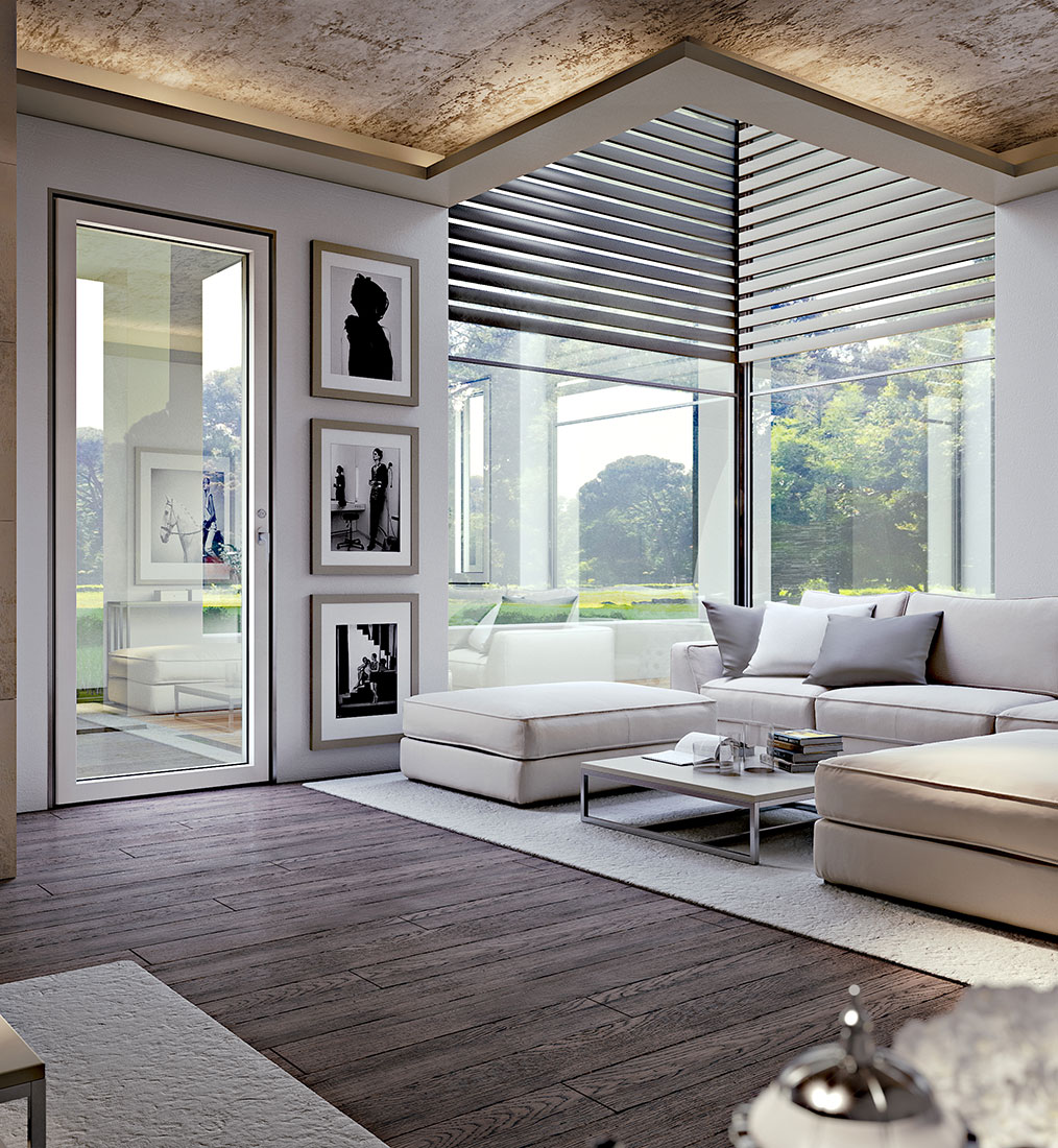 La gamma di serramenti blindati Ikona si è rivelata perfetta per questa particolare realizzazione su misura, che ha comportato la creazione di esclusive bow-window per una prestigiosa villa privata.